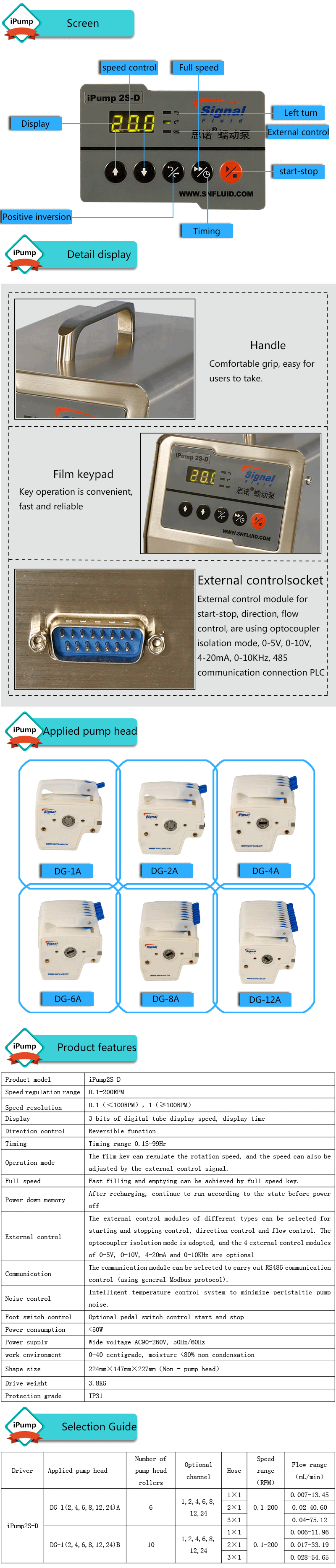 3. Large torque stepper motor drive, suitable for tandem use of multiple pump heads