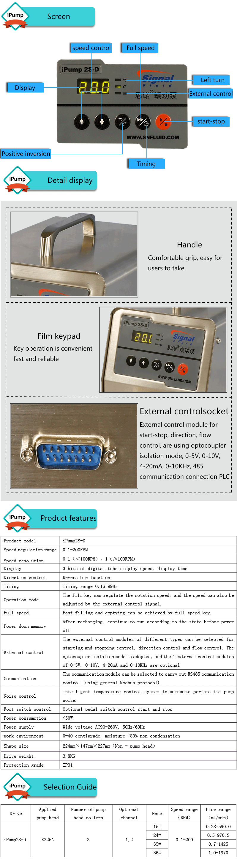 3. Large torque stepper motor drive, suitable for tandem use of multiple pump heads