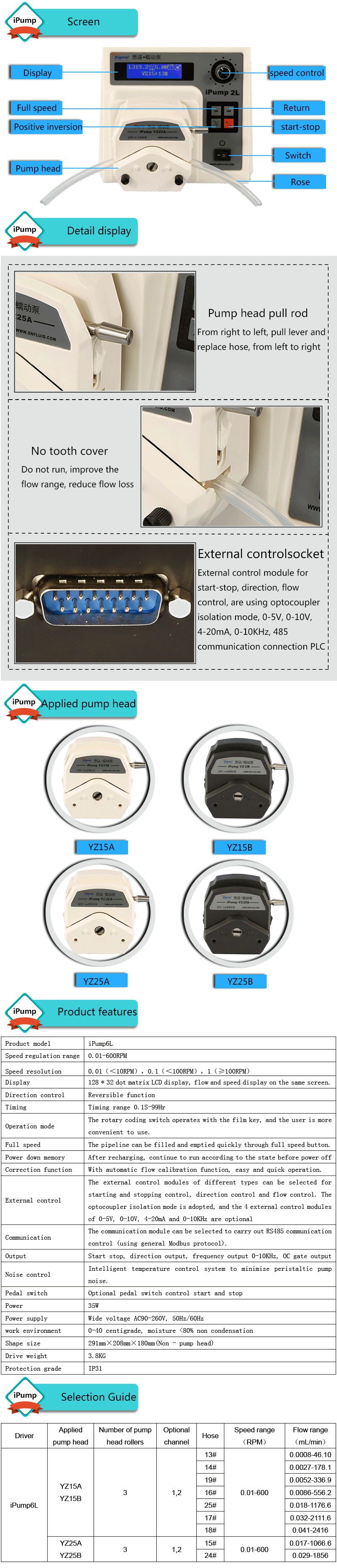 1. Flow range:0.0008-2416mL/min