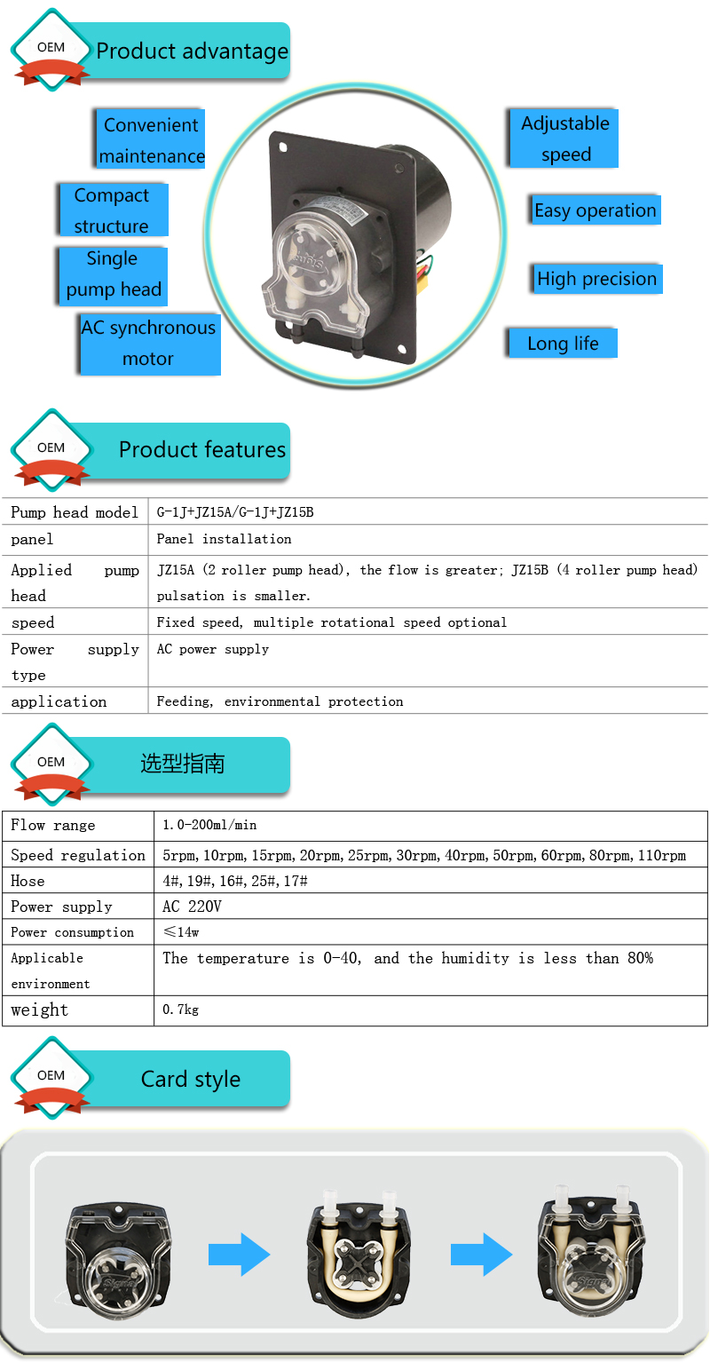 3. JZ15A(2 roller pump head), larger flow; JZ15B(4 wheel pump head) has a smaller pulse