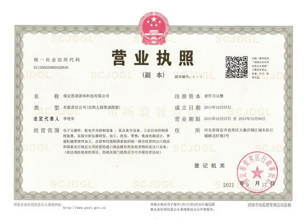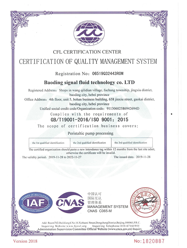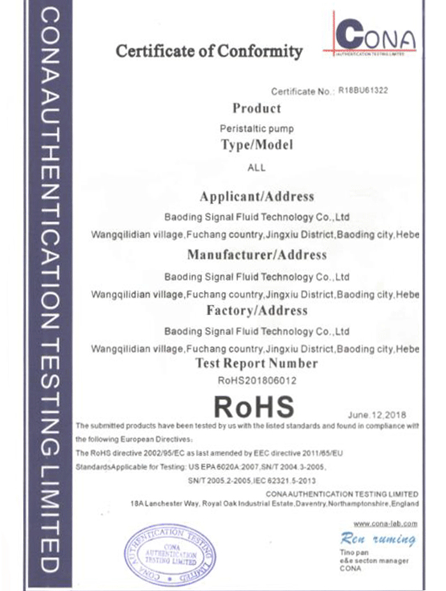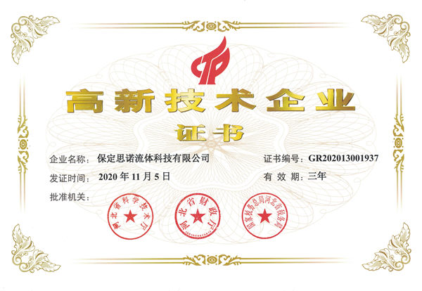 Baoding Signal Fluid Technology Co., Ltd. has been awarded certificates of high-tech enterprises, RoSH certificates, safety production standardization certificates, etc.