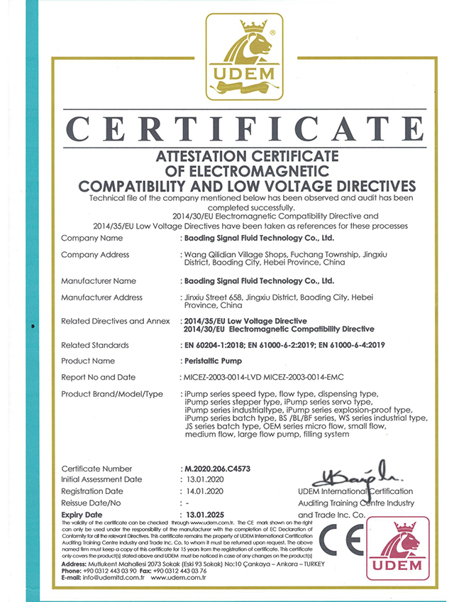 Baoding Signal Fluid Technology Co., Ltd. won CE certification